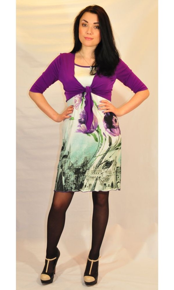 Великолепный летний комплект: сарафан прямого силуэта, на тонких бретелях и оригинальное болеро с рукавом 3/4 и длинными завязками. Выполнено из яркого однотонного полотна. Прекрасный летний вариант для повседневных радостей.